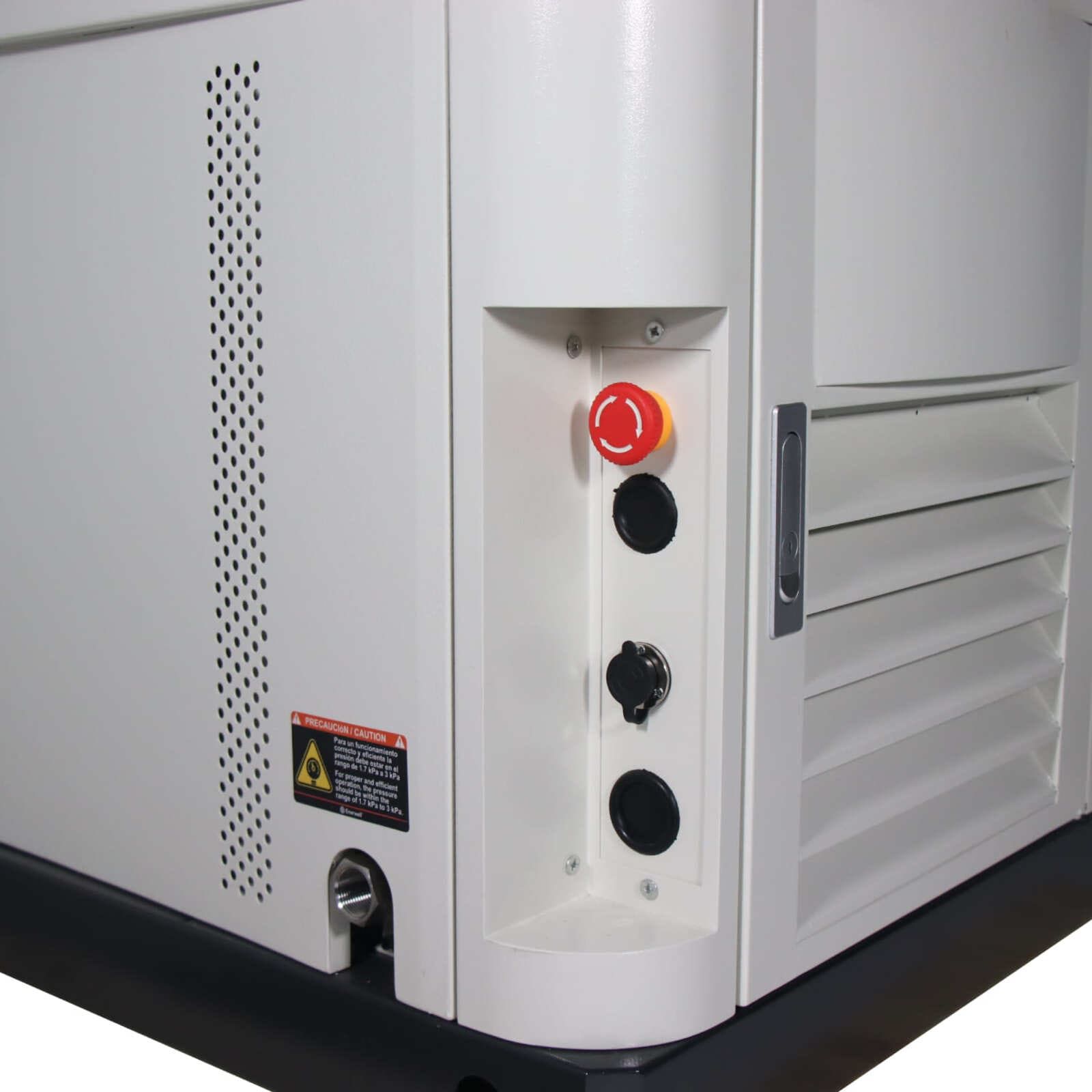 | Características | Operación silenciosa con regulación AVR ≤5%, preparado para un sistema de transferencia automática, compatible con módulo Wi-Fi, opera con GN o GLP (1.7–3.5 kPa), protegido por gabinete metálico reforzado con doble aislamiento acústico. |