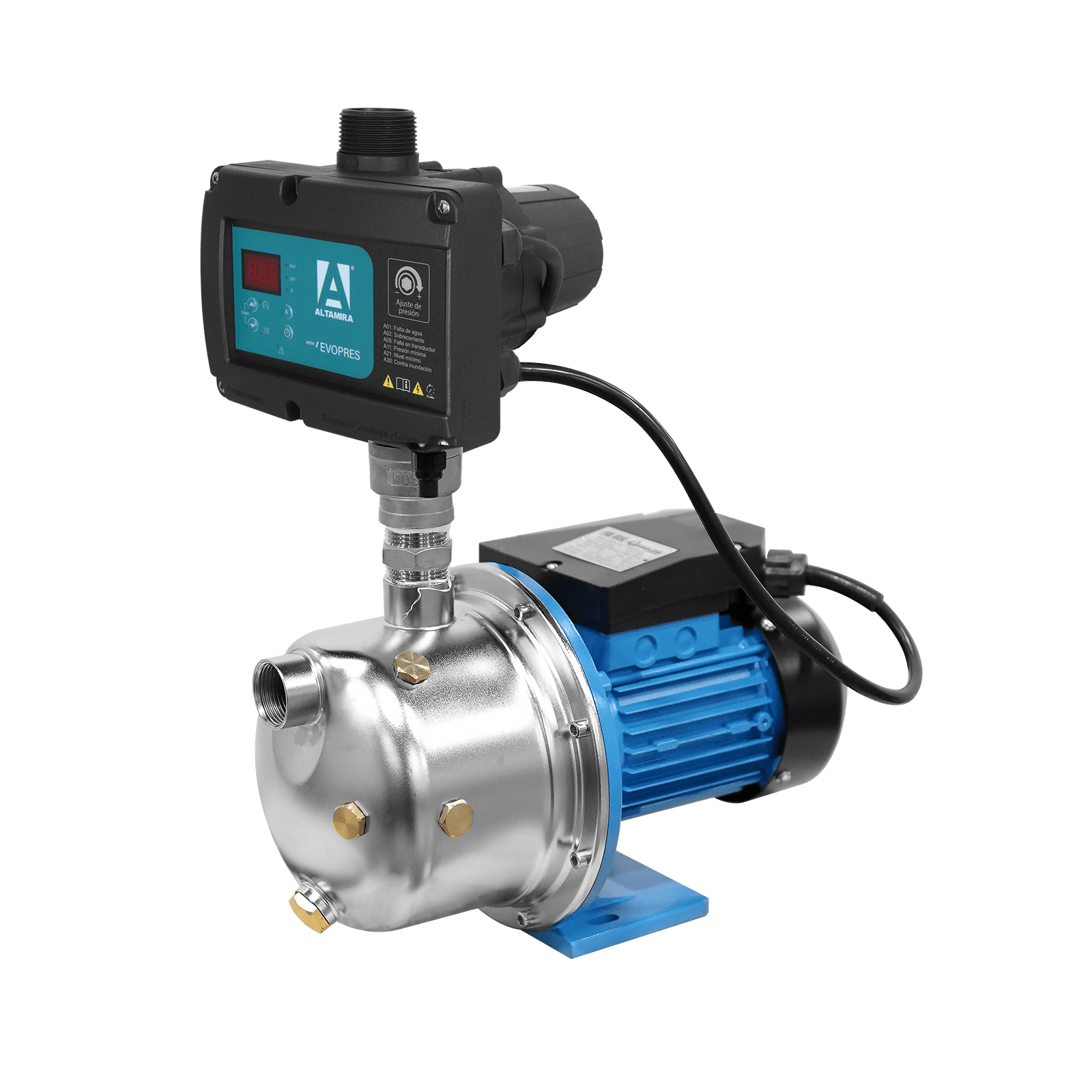 | Incluye | Bomba, control de presión (EVOPRES-16) y 1 metros de cable tomacorriente con clavija. |
